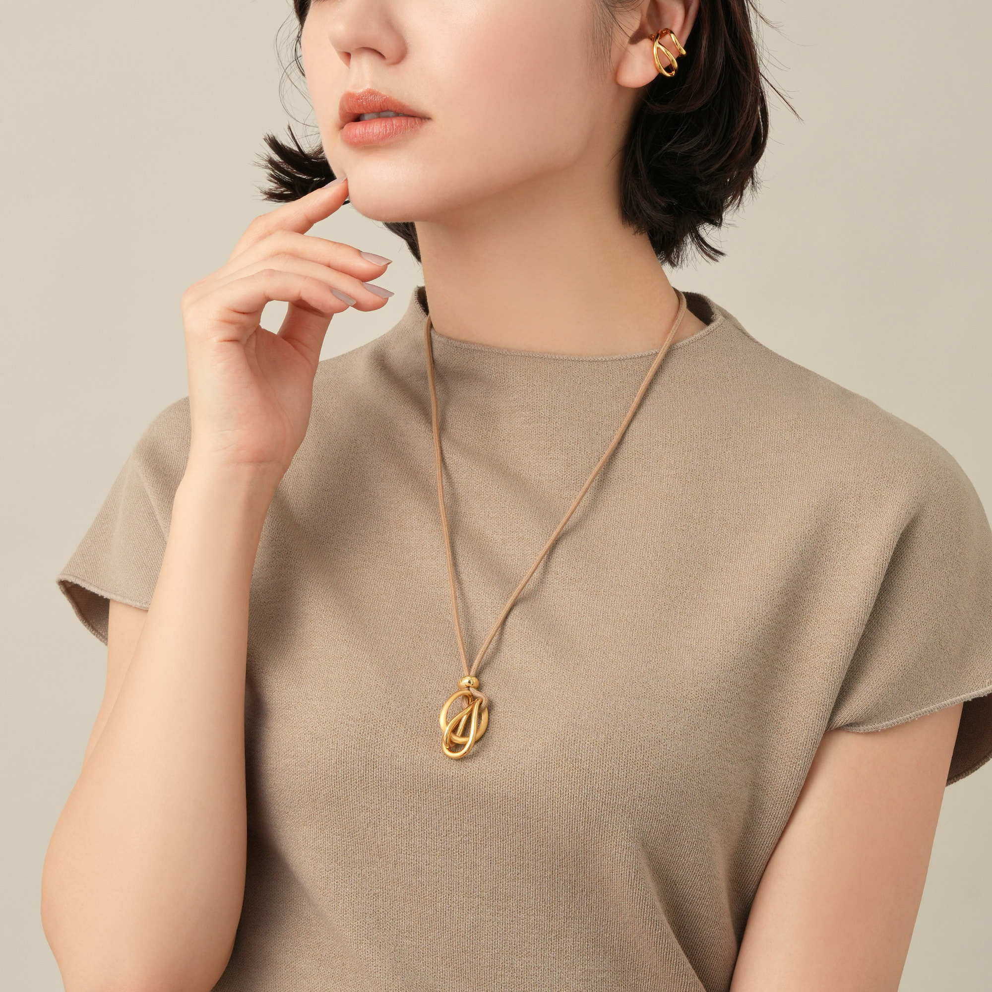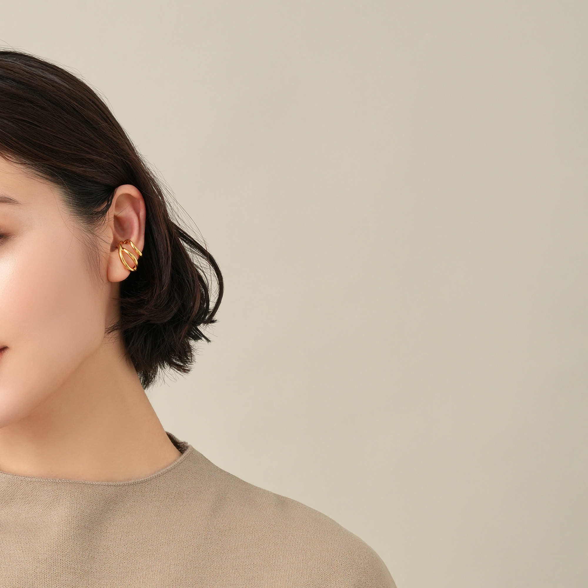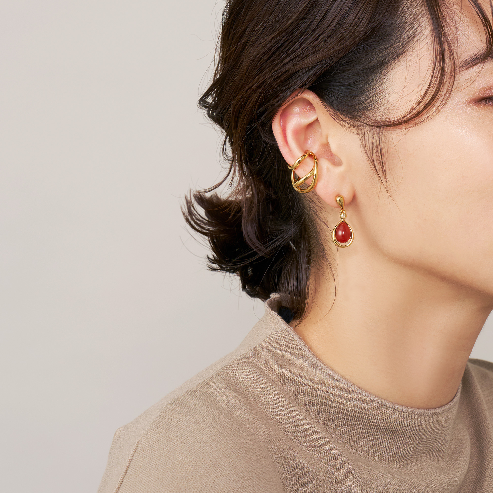 オーガニックなフォルムが特徴のイヤーカフ。 大小異なるサイズのフープが耳を柔らかに包みこむデザインです。 程よいサイズ感で、他のイヤーアイテムとの重ね着けも楽しめます。 つくりの良さと着けやすいサイズ感が魅力。スタイルやシーンを選ばず、さり気ない存在感でスタイリッシュに演出してくれます。