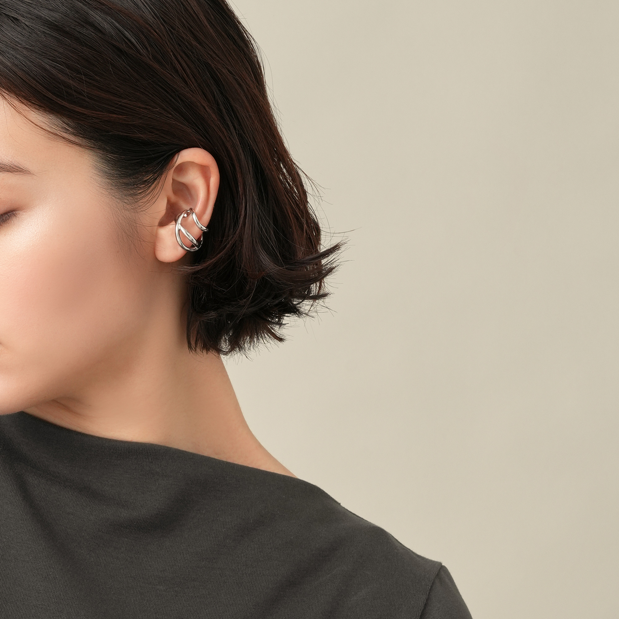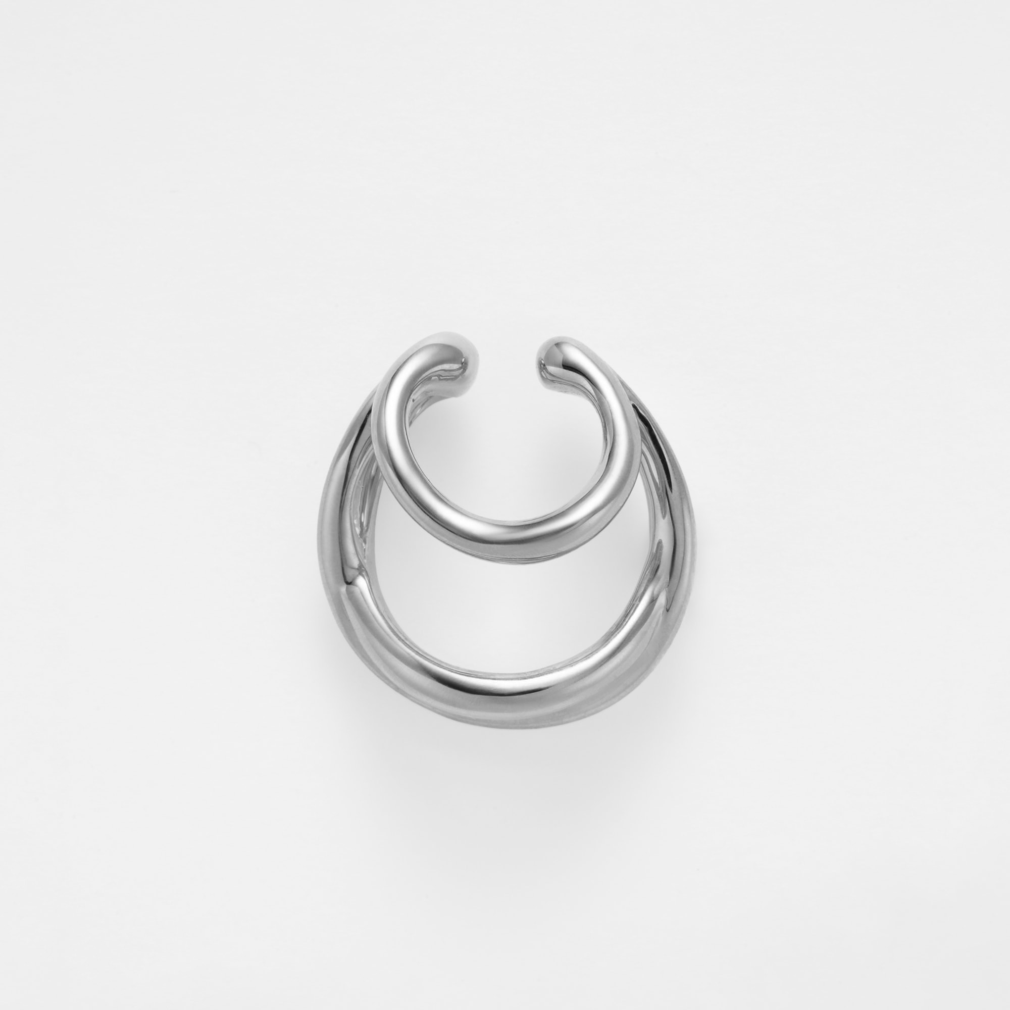 オーガニックなフォルムが特徴のイヤーカフ。 大小異なるサイズのフープが耳を柔らかに包みこむデザインです。 程よいサイズ感で、他のイヤーアイテムとの重ね着けも楽しめます。 つくりの良さと着けやすいサイズ感が魅力。スタイルやシーンを選ばず、さり気ない存在感でスタイリッシュに演出してくれます。