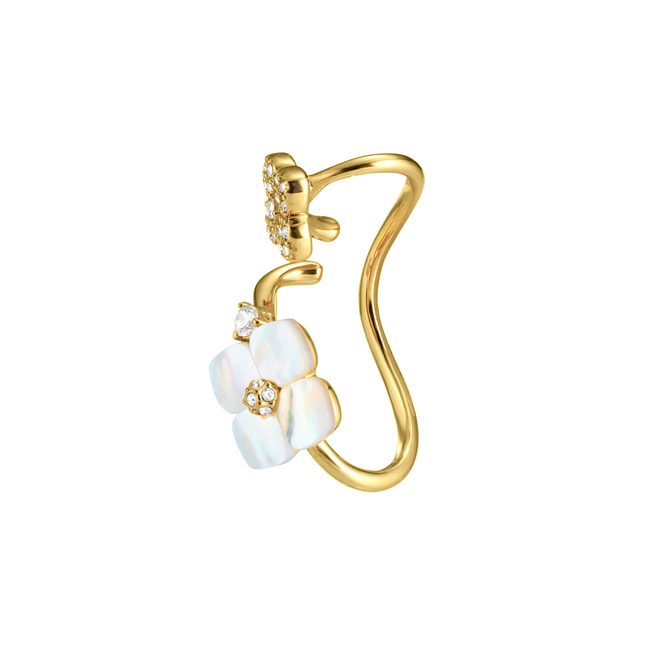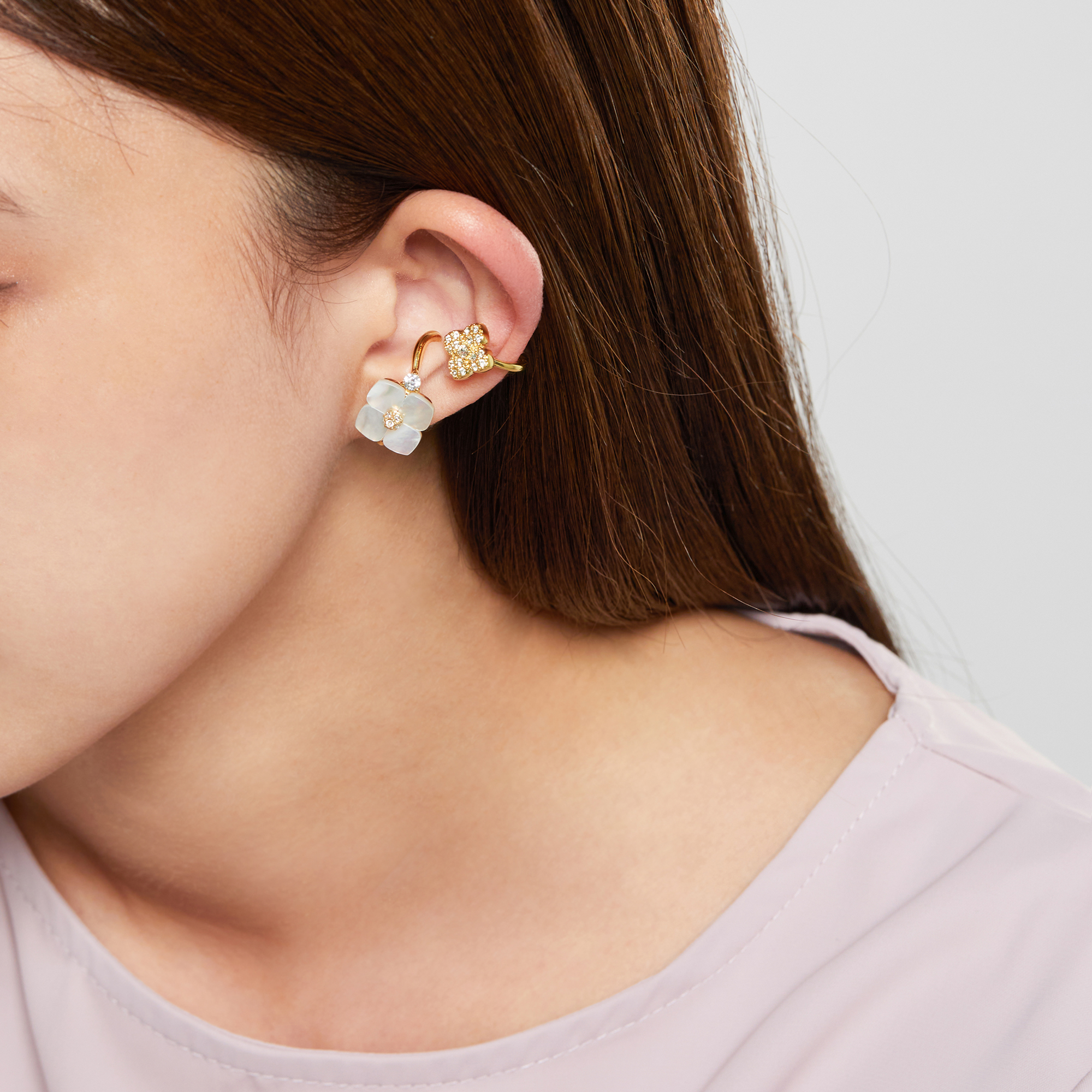 質のよい白蝶貝を1つ1つ丁寧にかたどった花モチーフのイヤーカフ。