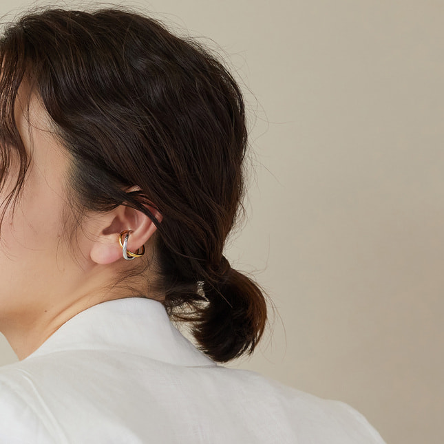 柔らかに重なり合うラインが美しいイヤーカフ。