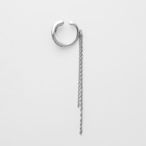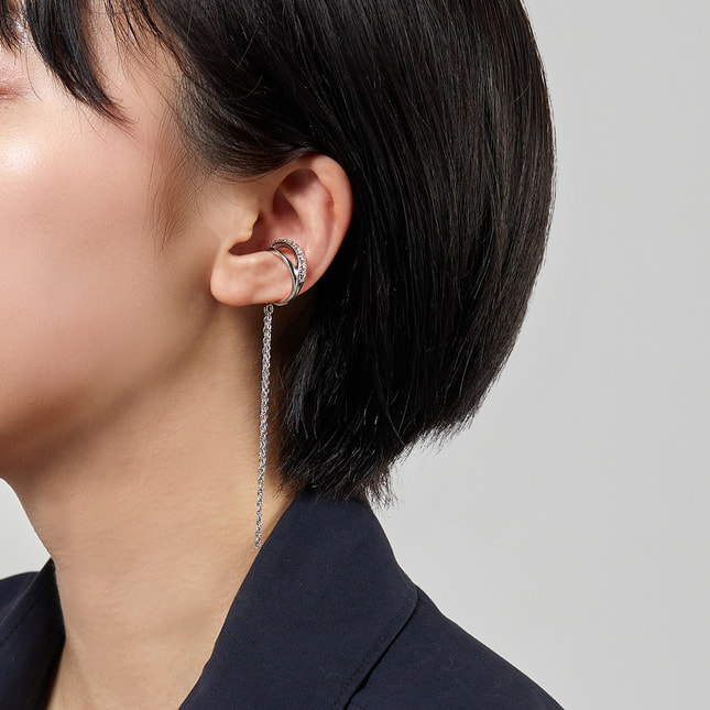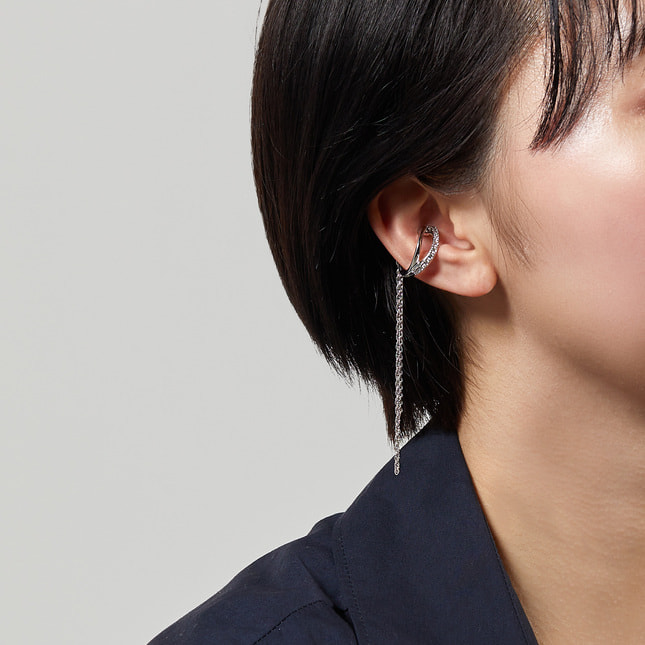 流れるようなラインと、チェーンが織りなすロングシルエットが印象的なイヤーカフ。