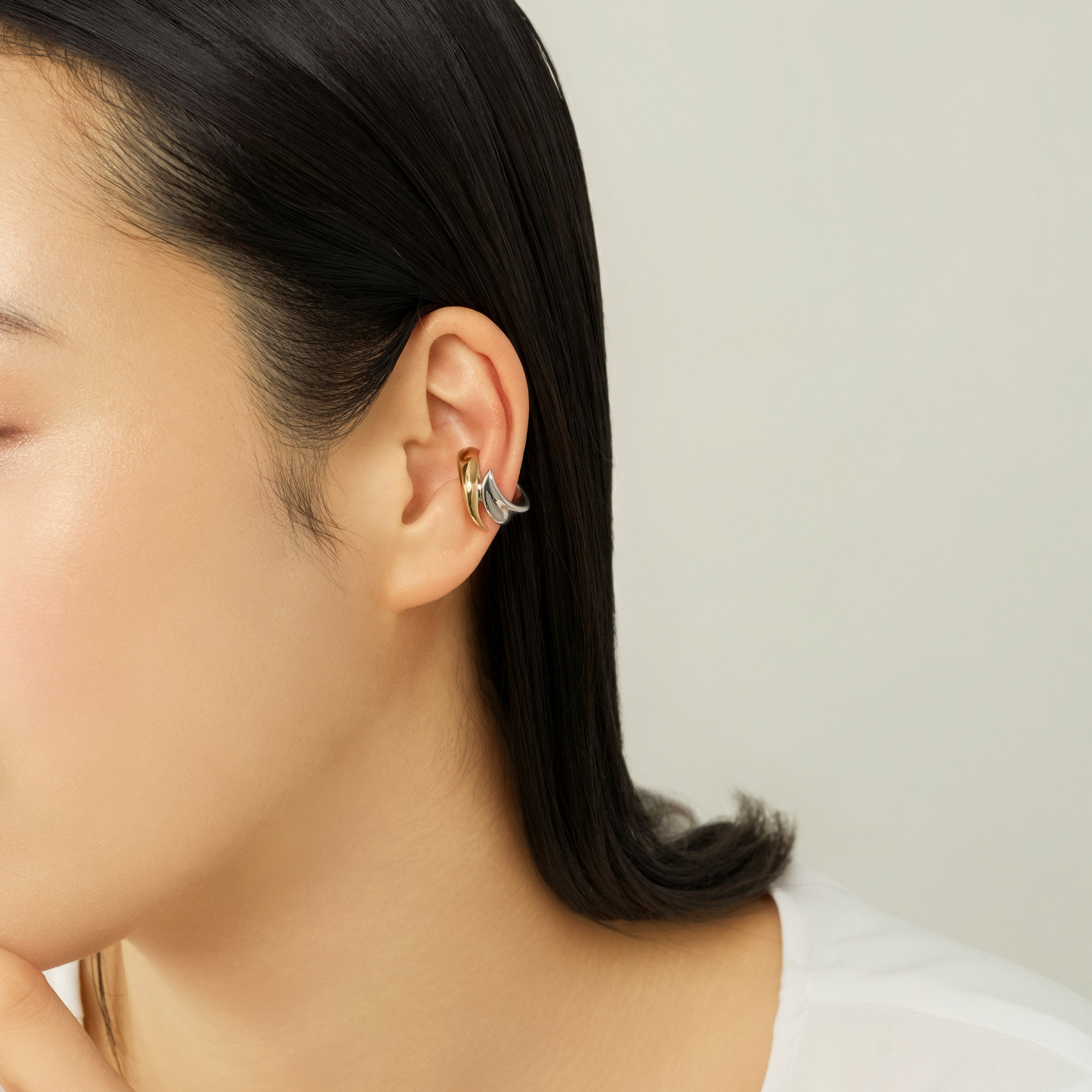 細長い葉がしなやかに揺れるシーンをイメージしてデザインした、オーガニックなフォルムのイヤーカフ。