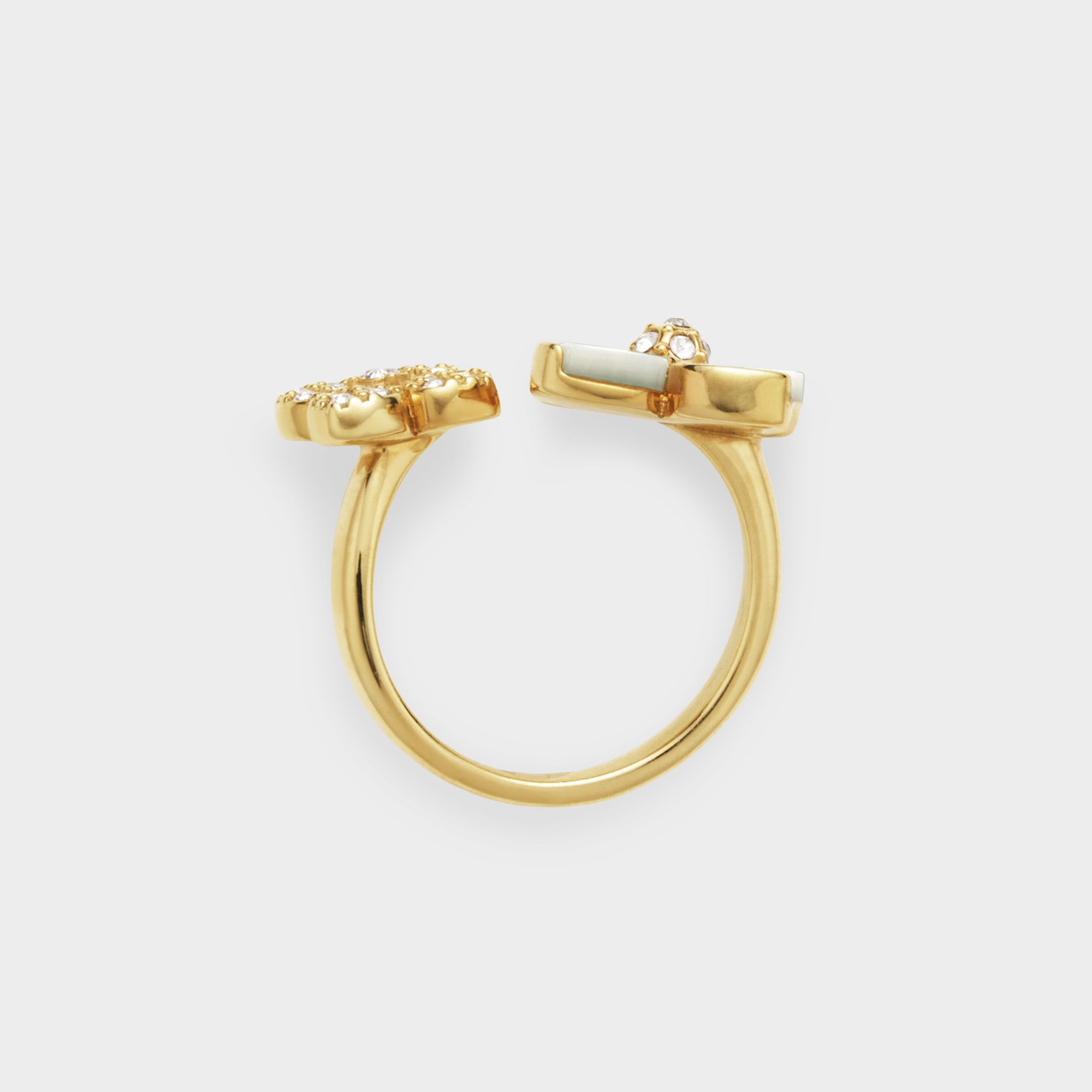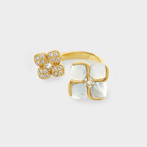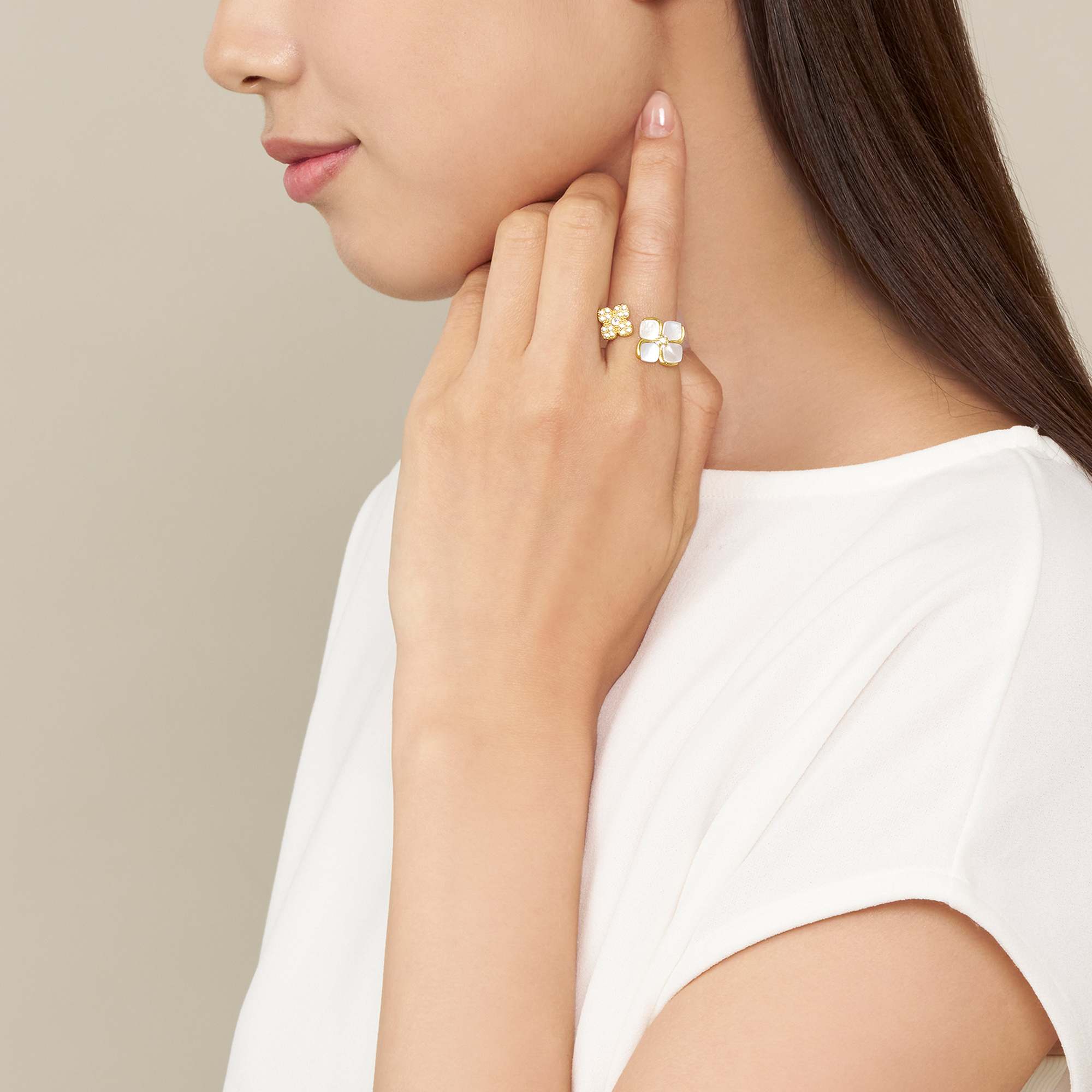 質のよい白蝶貝を1つ1つ丁寧にかたどった花モチーフのリング。