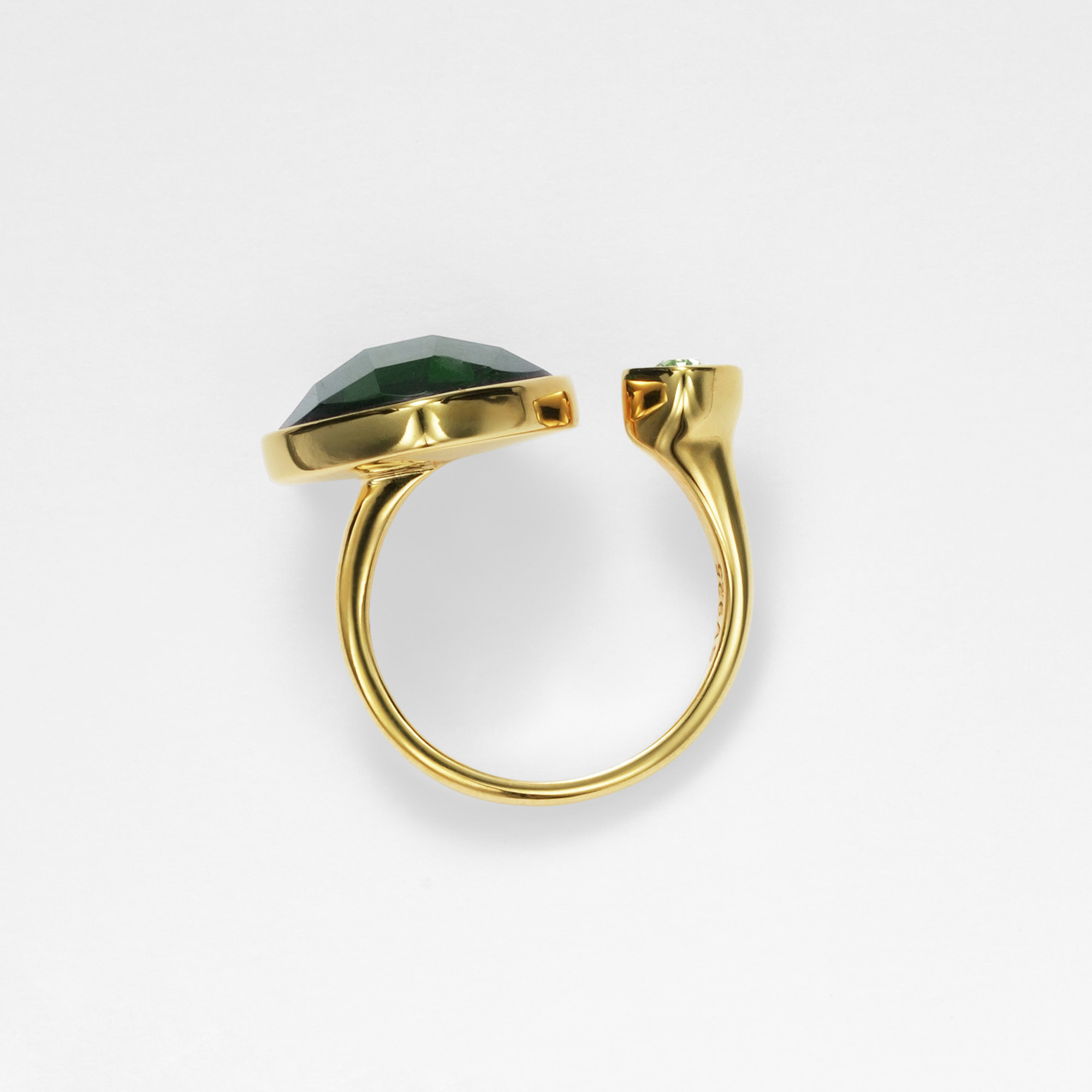 グリーンのカットガラスとの色彩のハーモニーが美しく、印象的で華やかに手元を演出します。