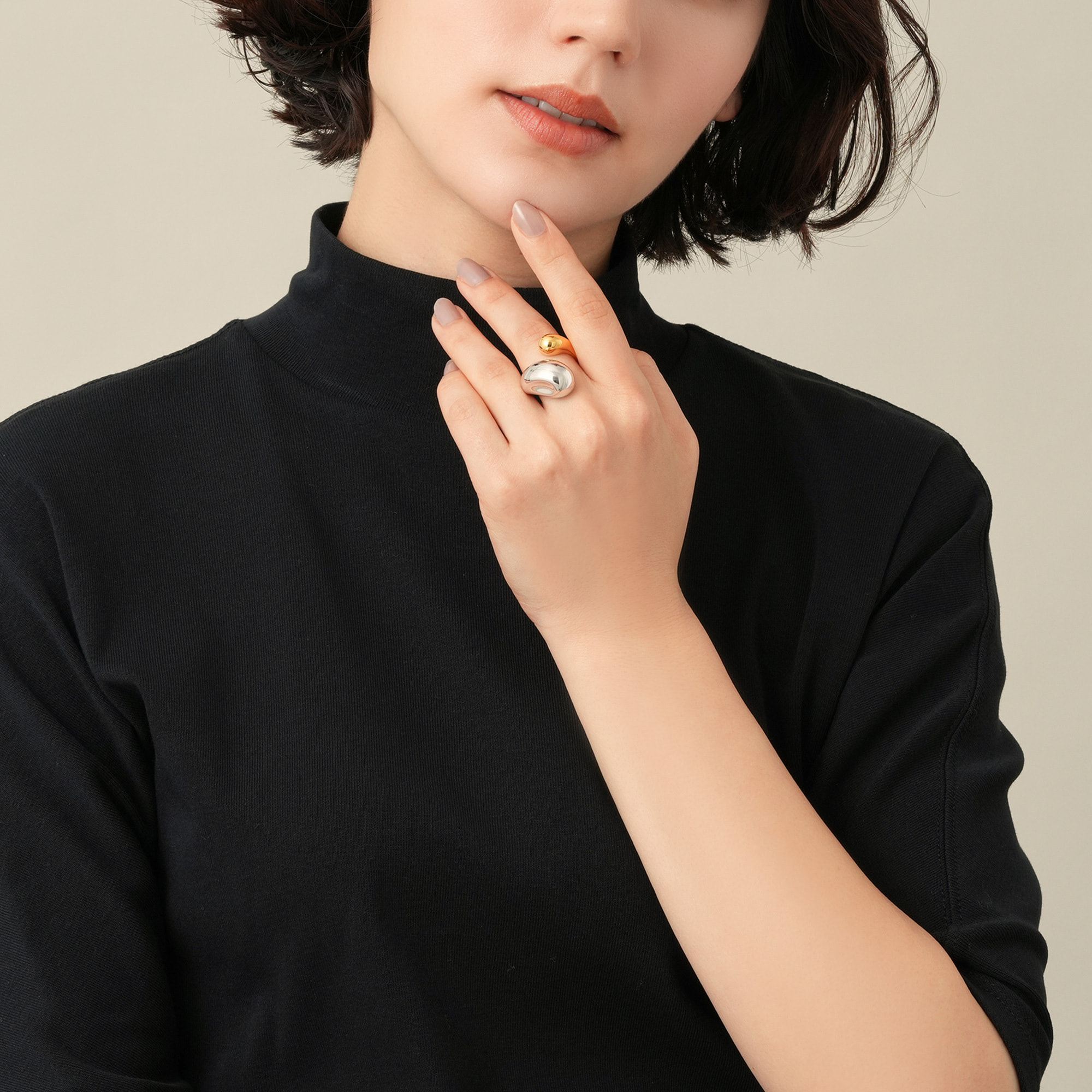 芽吹きはじめた植物の種や自然の恵みの雨粒からインスパイアされた、オーガニックなドロップフォルムのリング。