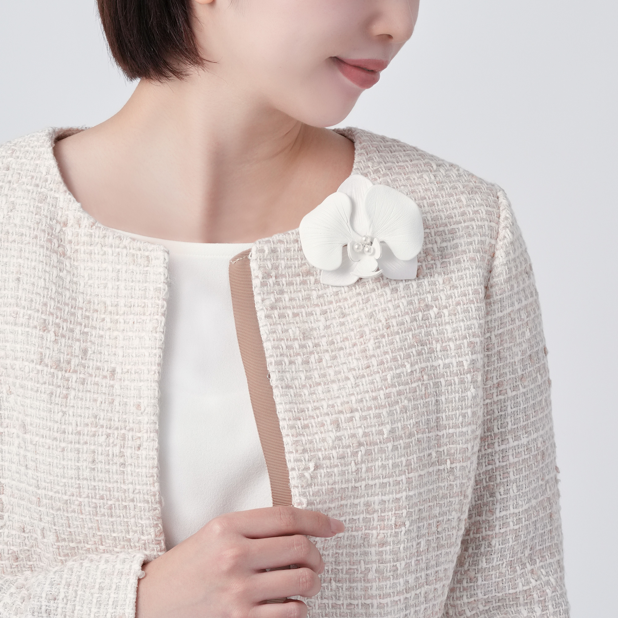 清らかで上品な雰囲気の胡蝶蘭をモダンに表現したコサージュ。