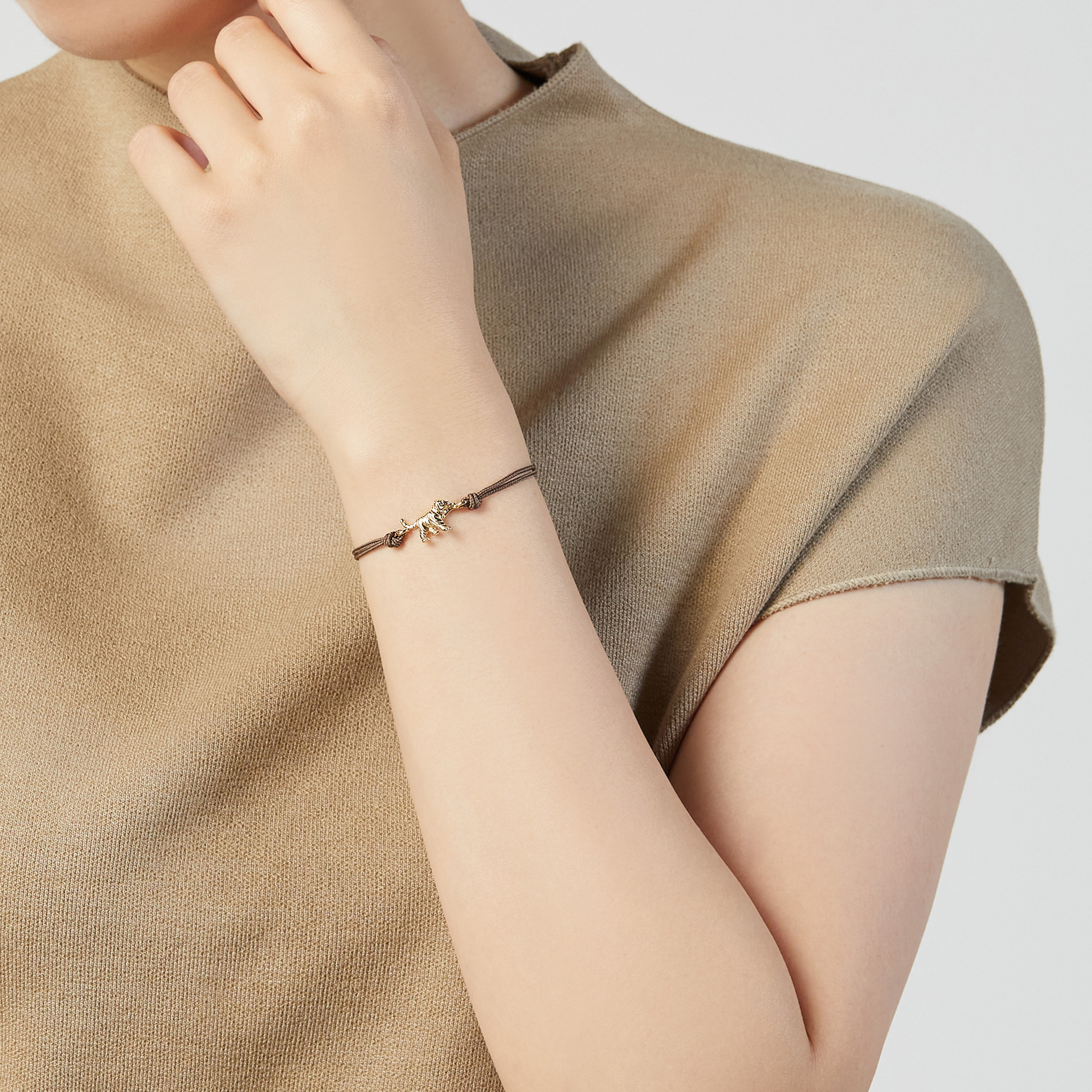 「伝えるのは、命」という旭山動物園の理念に共感し、それぞれの動物らしい表情や動きの瞬間をアクセサリーで表現したK10イエローゴールドのラインナップ。アムールトラはトラの仲間で最も寒い地方に住み、最も大きい種類です。自然破壊のため絶滅寸前で、野生では約400頭程しかいませんが、近年保護活動が進み、徐々に回復傾向になってきました。園内では好奇心いっぱいに、元気にじゃれあう微笑ましい姿が見られます。躍動感あふれる一瞬の姿をとらえてコードブレスレットにしました。スライドアジャスターで長さ調整もスマートにできます。顔の表情や、リアルな体の動き、トラ模様のディテールにまでこだわった商品です。売り上げの一部は「あさひやま”もっと夢”基金」に寄付いたします。 ▼ 旭山動物園応援企画 商品一覧はこちらhttps://vendome.jp/vendome_boutique/feature/asahiyama_zoo※こちらの商品は無料でスペシャルパッケージにお入れいたします。