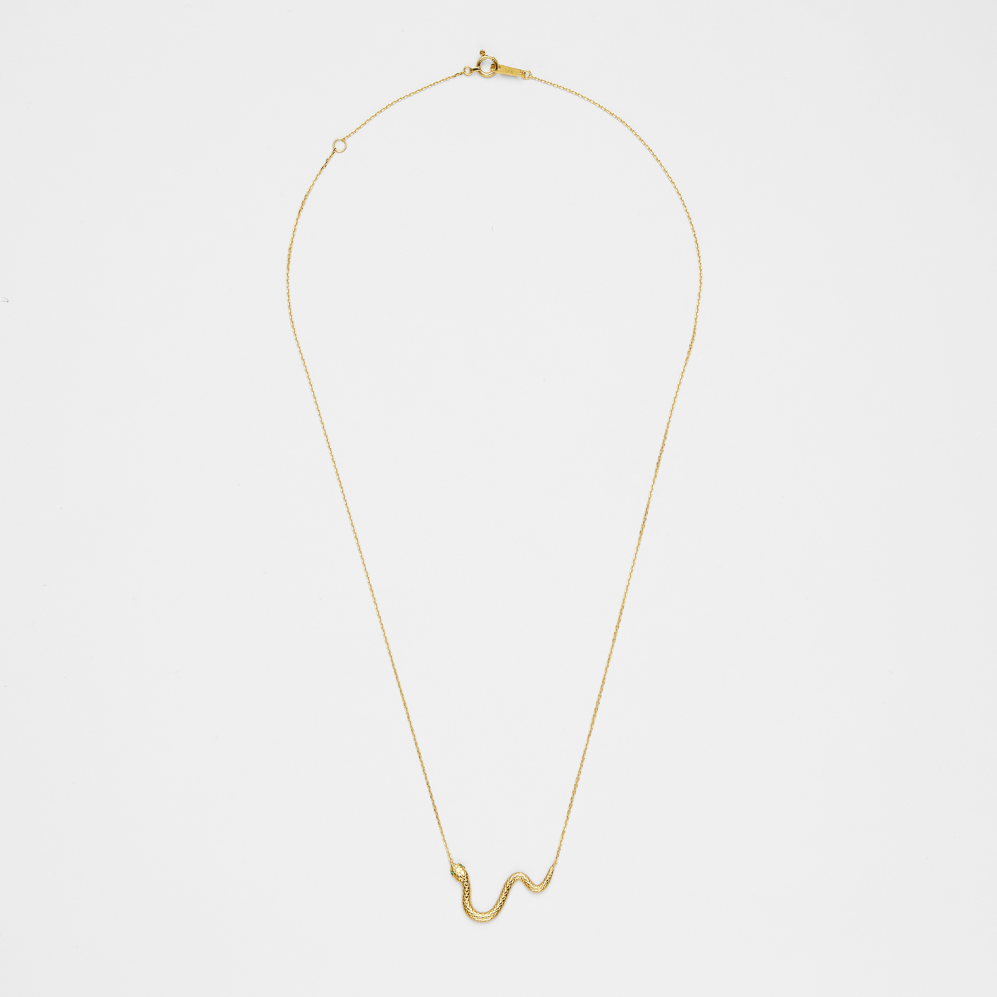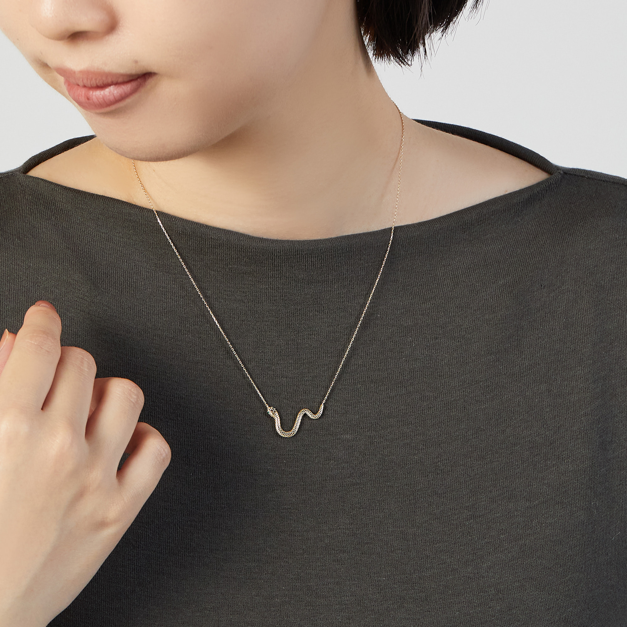 アオダイショウのしなやかなフォルムを繊細に表現したネックレス。さり気ない細身のフォルムはシンプルな中にも華やかさがあり、胸元を美しく印象的に魅せてくれます。