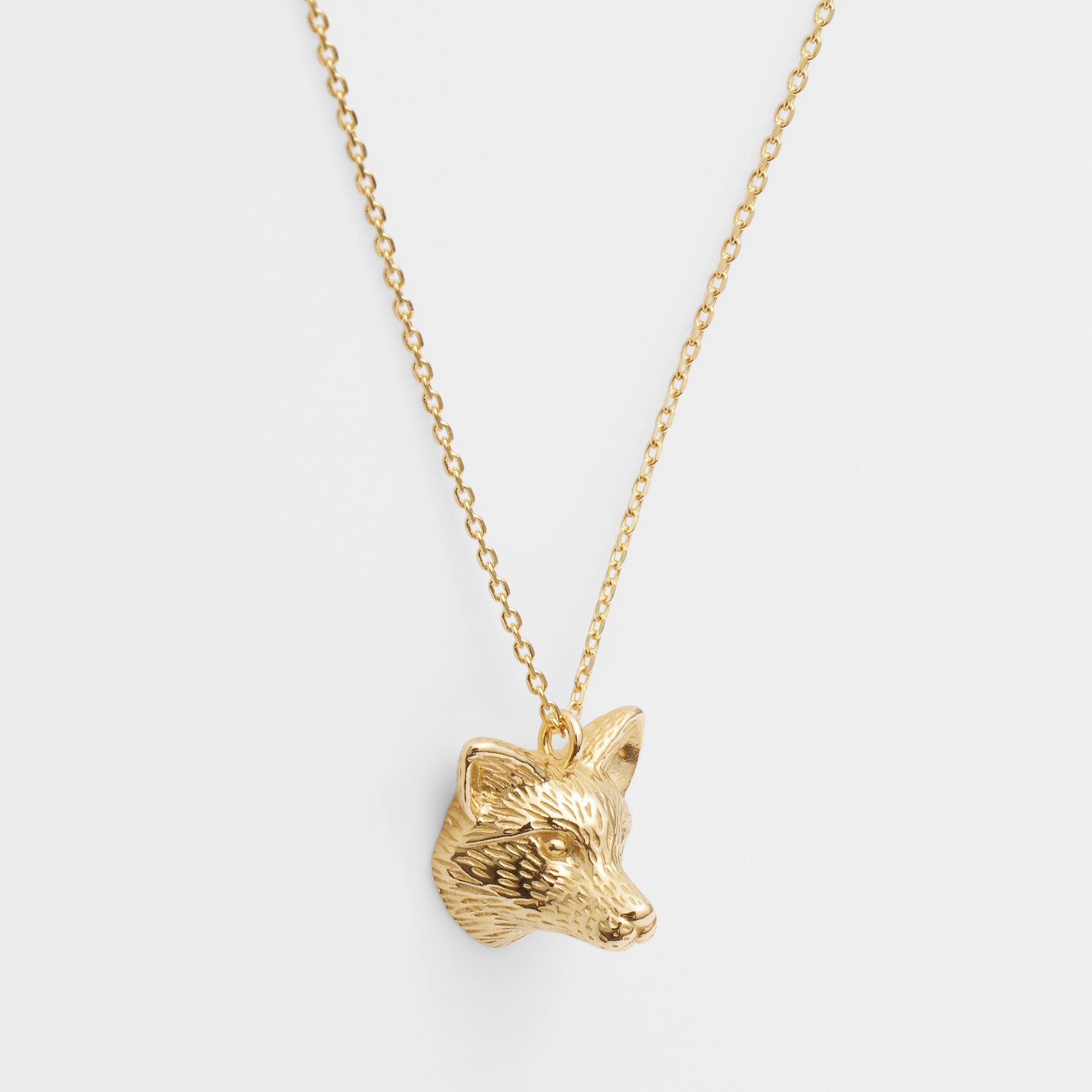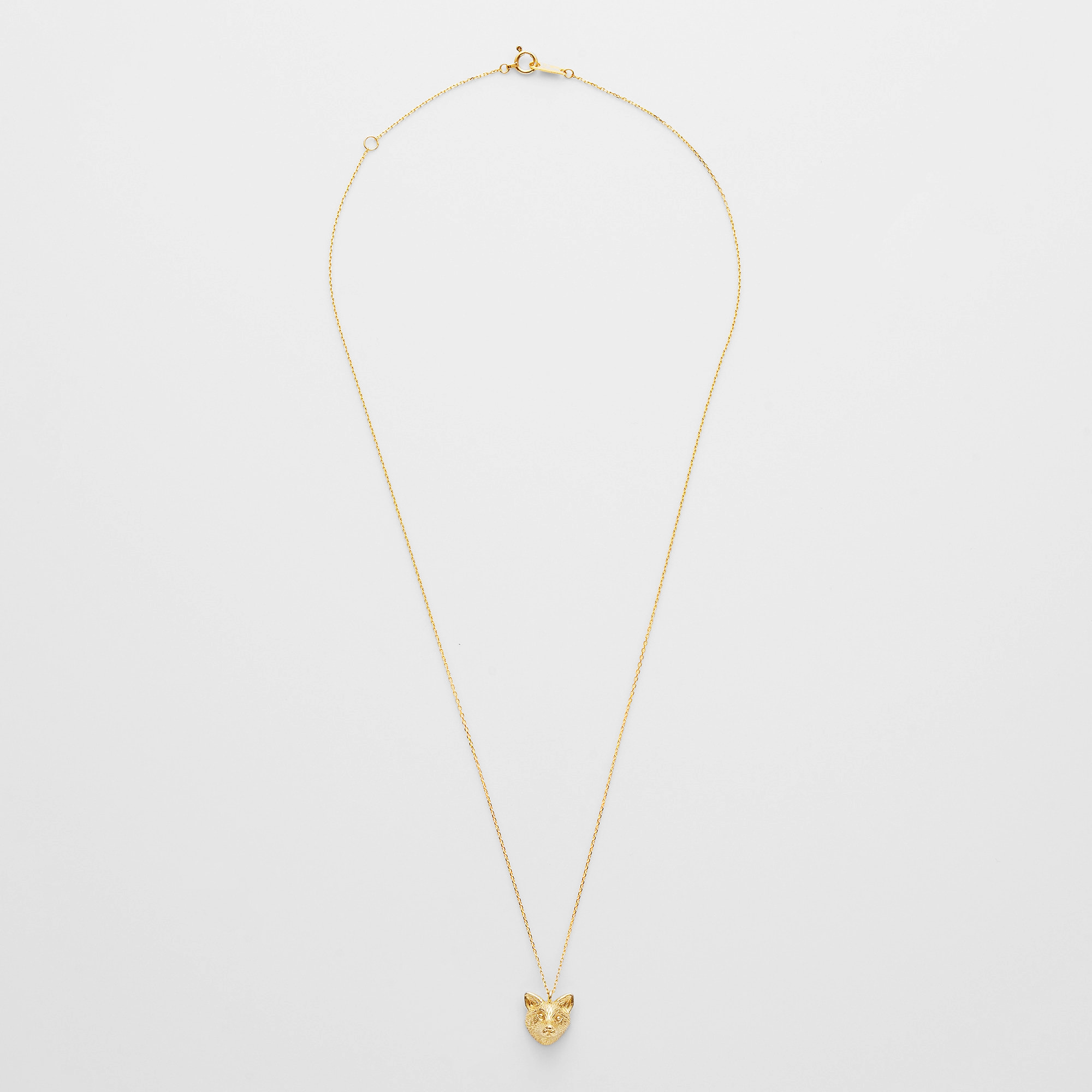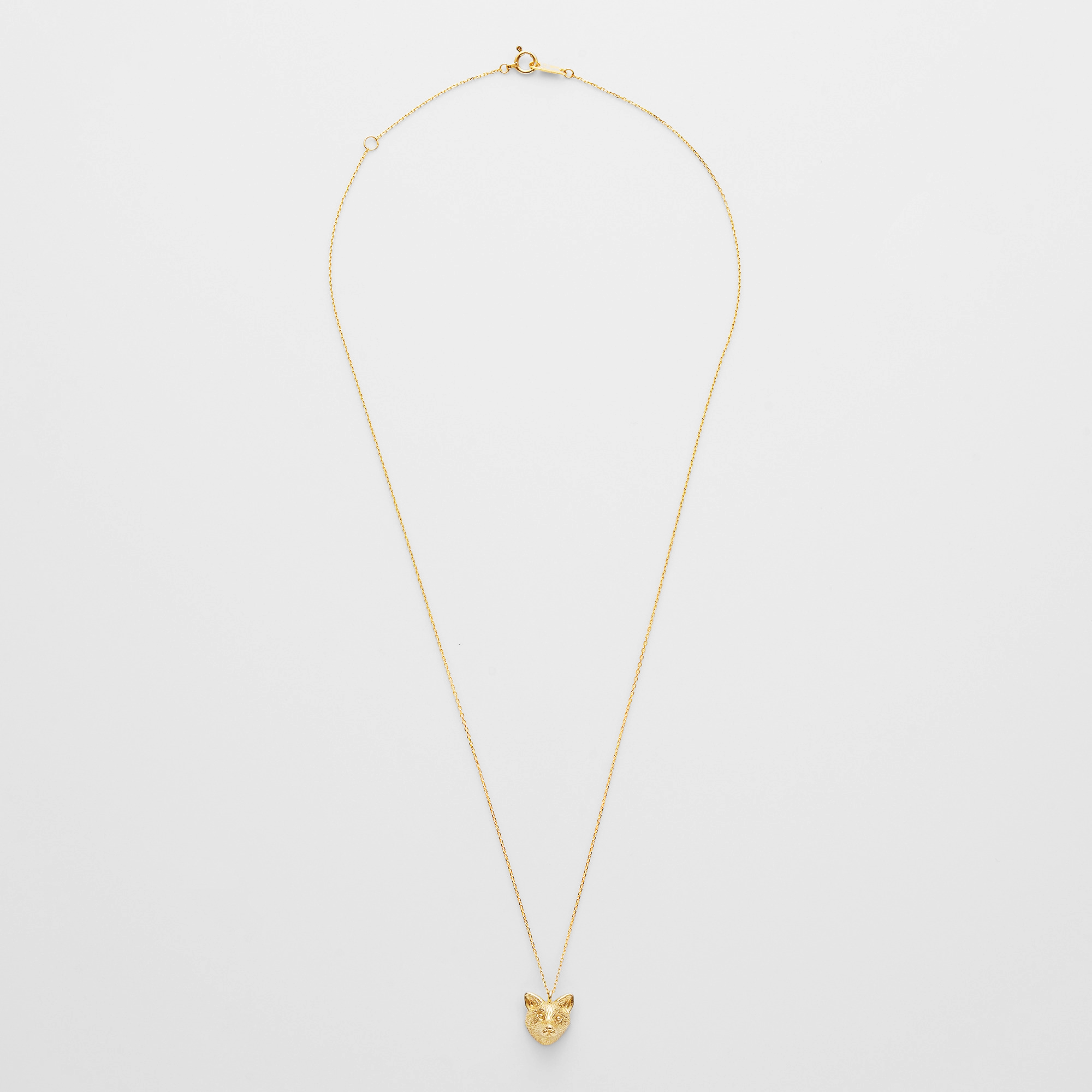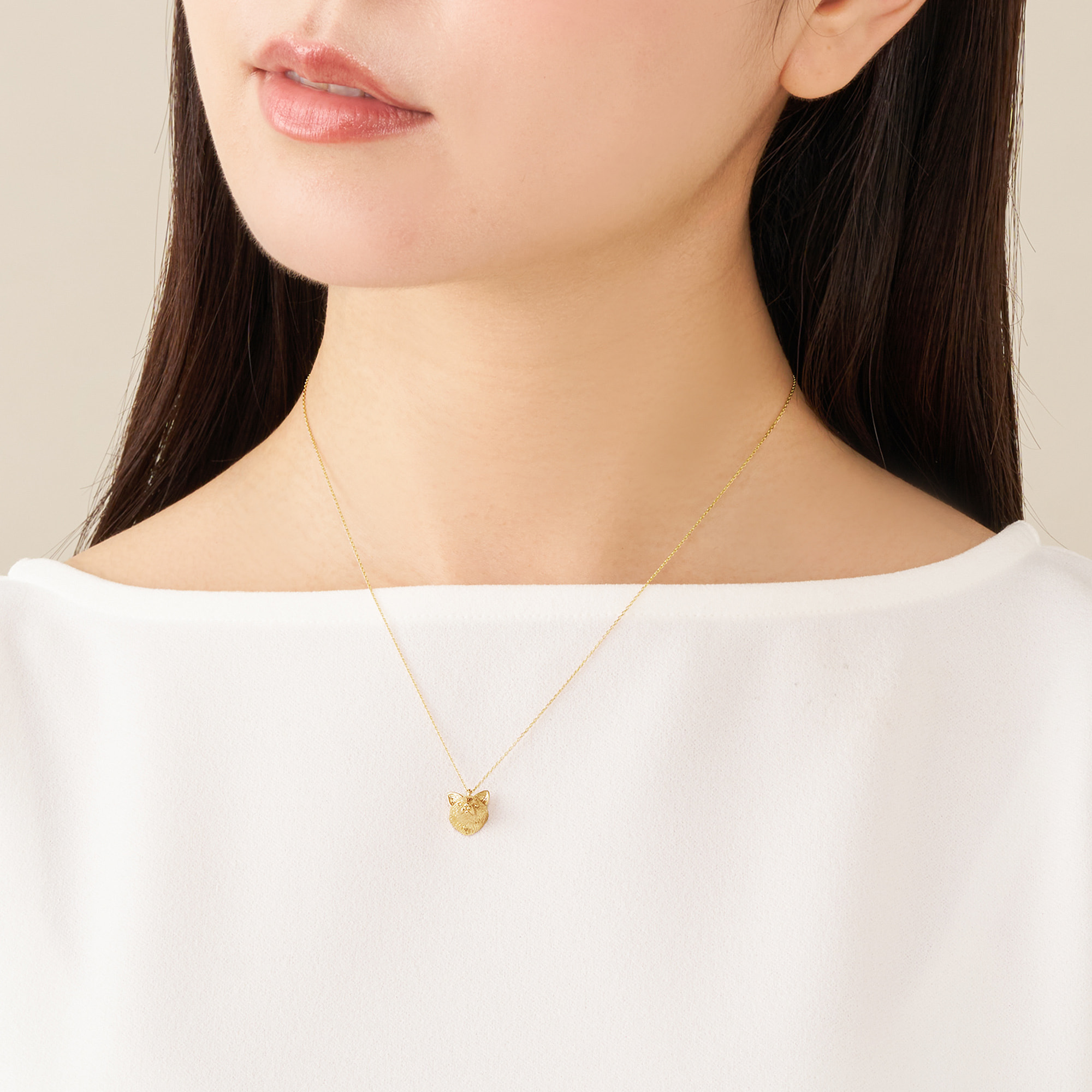 キタキツネの凜とした表情と、冬毛ならではのふっくらとした愛らしい雰囲気を表現したネックレス。