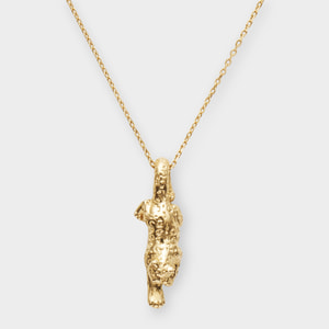 チベット高原では、断崖絶壁で狩りを繰り広げ「天空の王者」とも言われるユキヒョウ。俊敏な動きで狩りをする勇壮な姿をネックレスで表現しました。