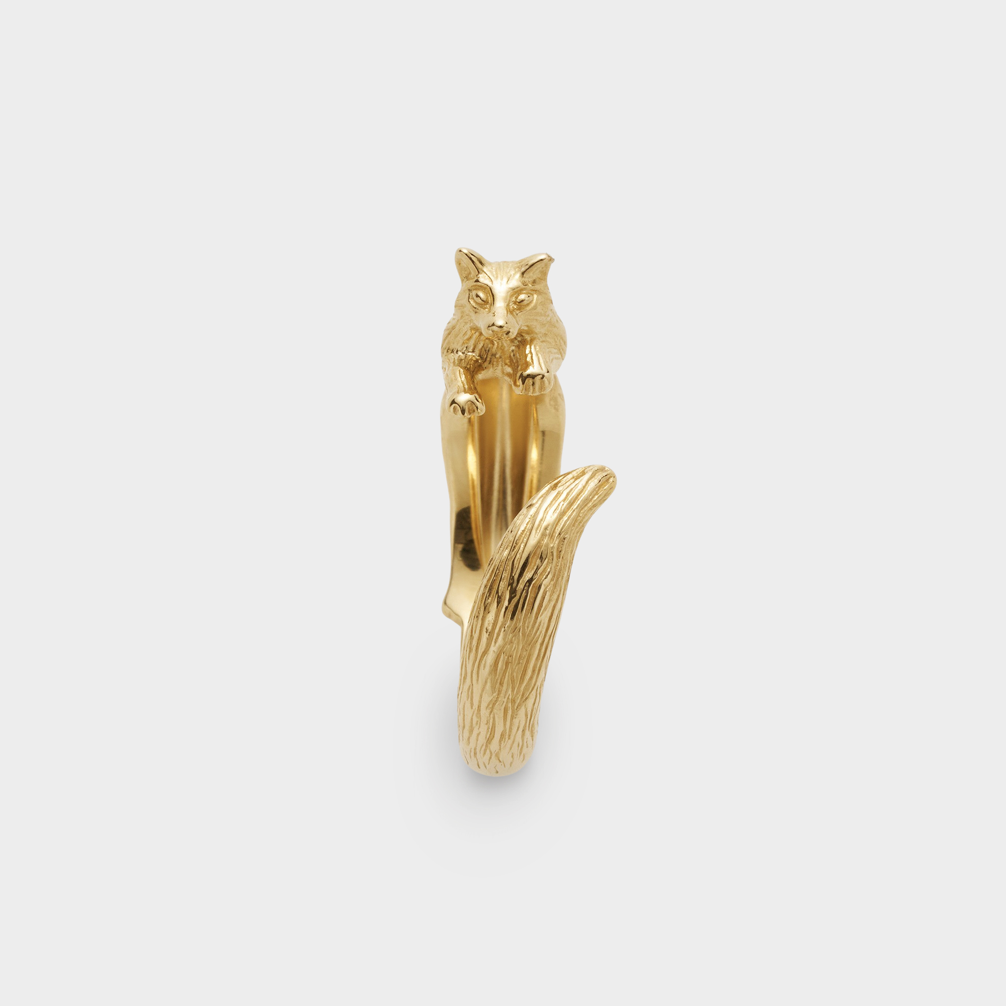 ふっくらとした冬毛の毛並みと、愛くるしい表情、指にさりげなく巻きつくふさふさの尻尾が、キタキツネのクラシカルな雰囲気を程よくキュートに和らげます。