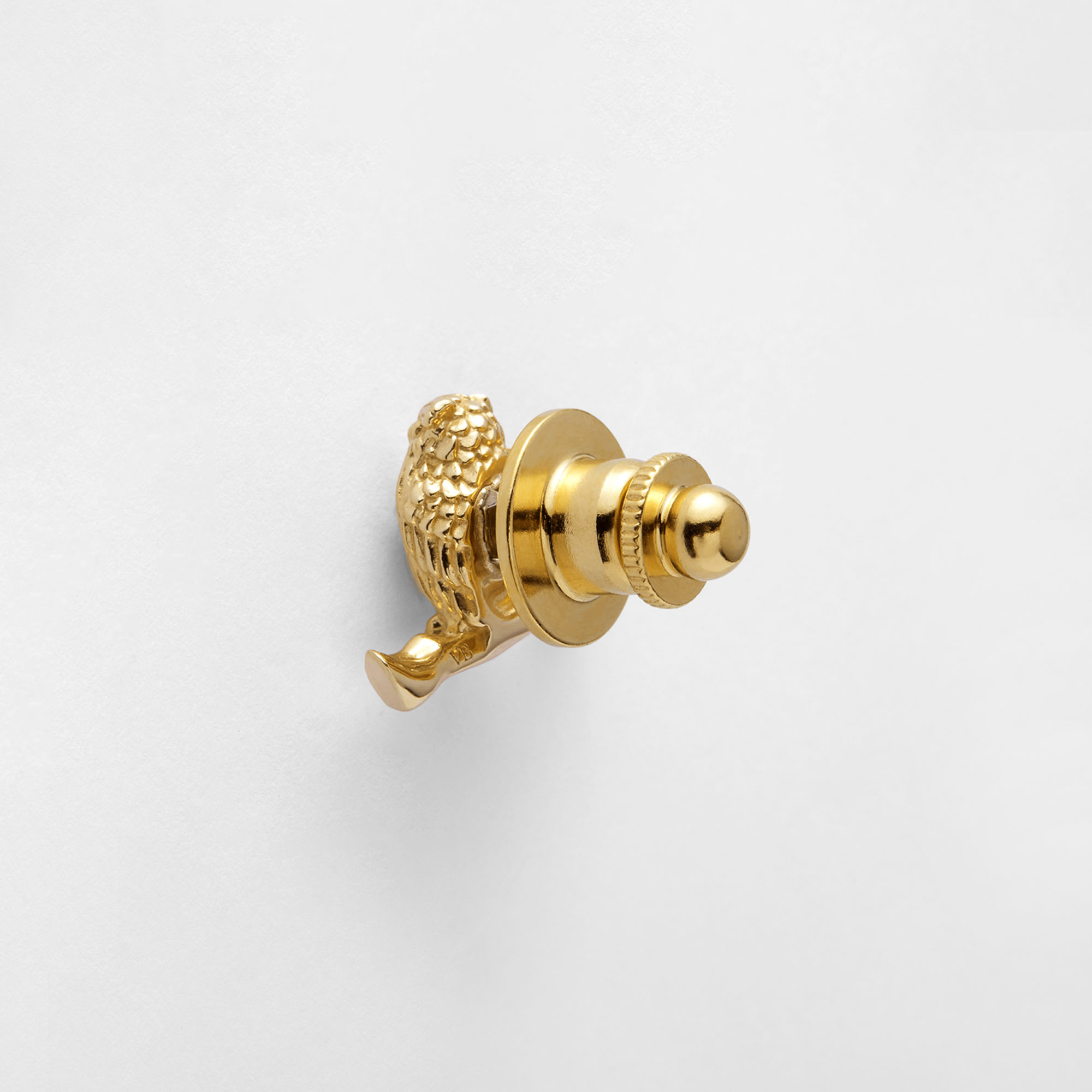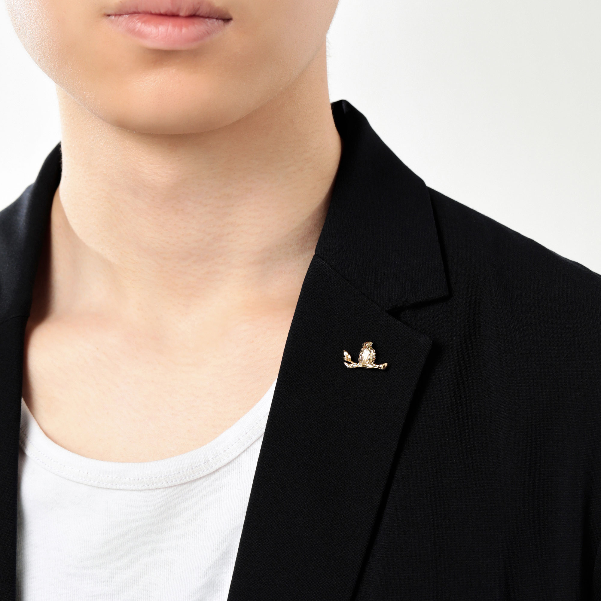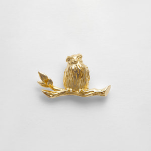 凛々しい表情はそのままに、木の枝で羽を休めどこかリラックスしたムードが魅力的なブローチです。