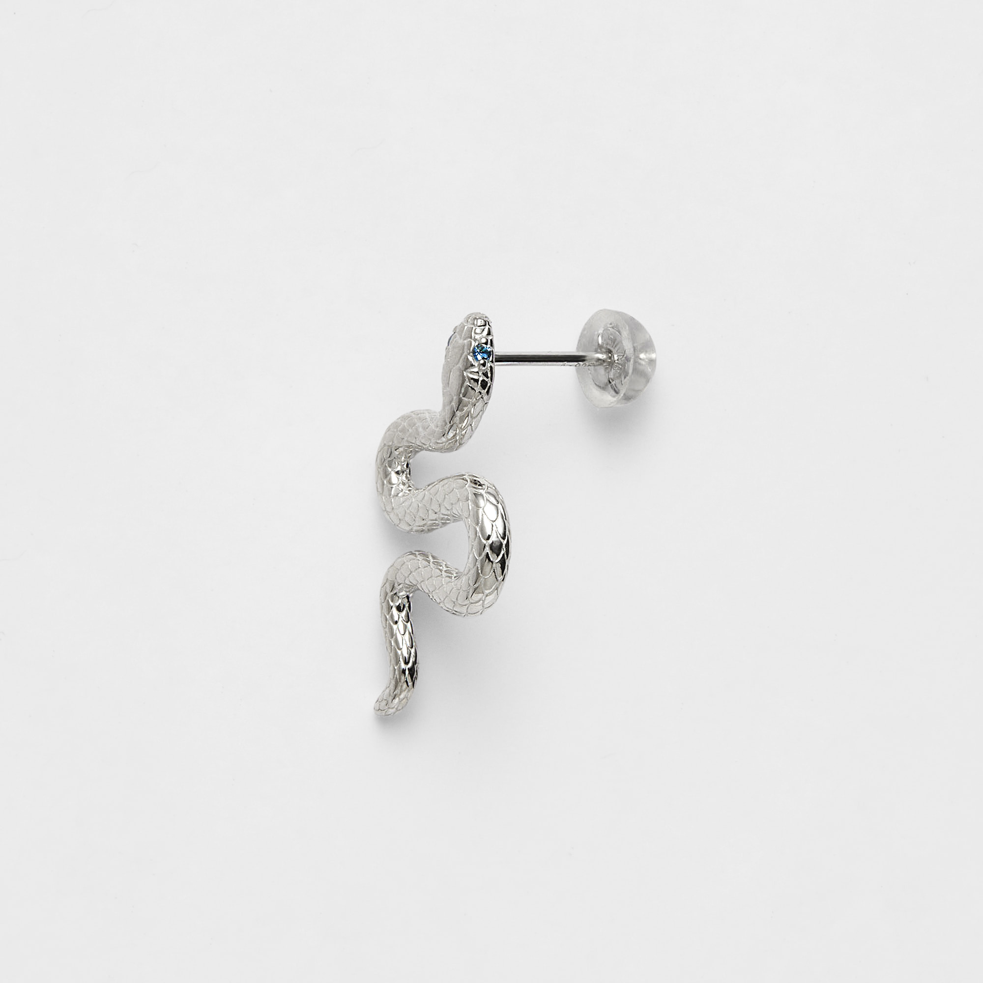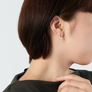 アオダイショウの滑らかで繊細な美しさを活かしたピアス。耳にそっと寄り添うアオダイショウが軽やかなデザインで印象的な耳元を演出します。