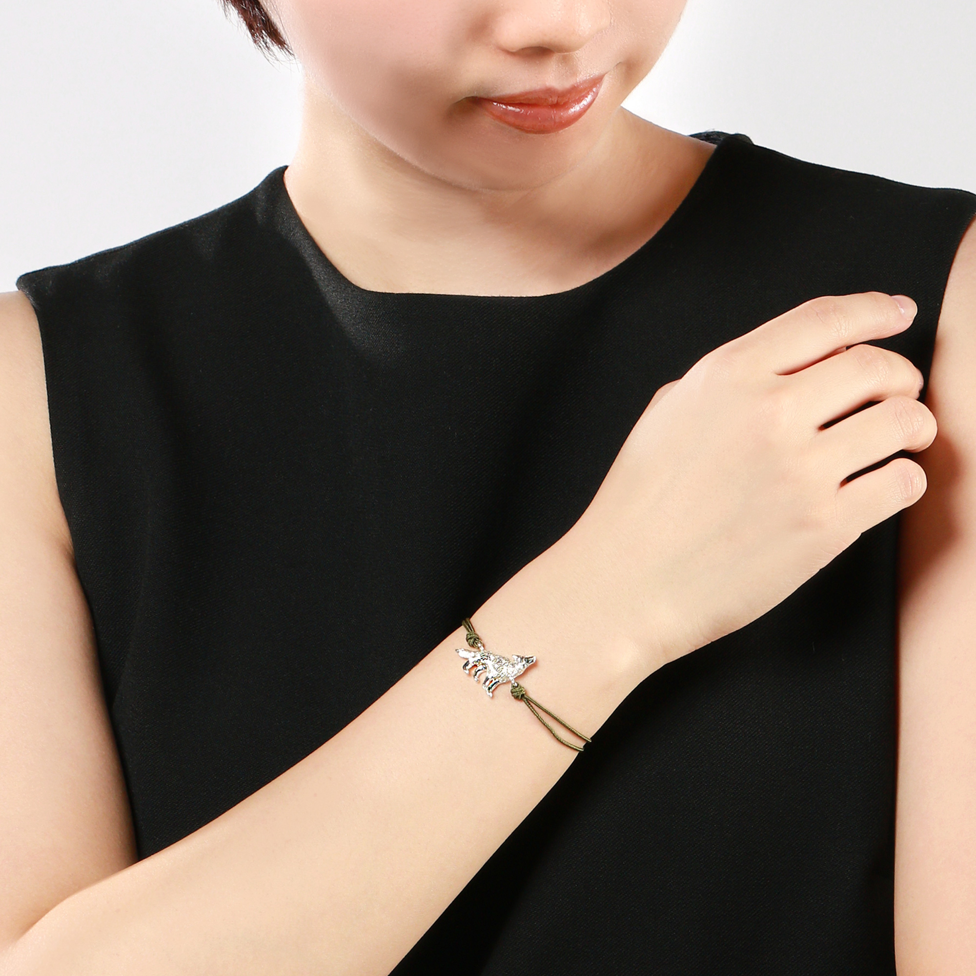 「伝えるのは、命」という旭山動物園の理念に共感し、それぞれの動物らしい表情や動きの瞬間をアクセサリーで表現したラインナップ。灰褐色から白っぽい色まで様々な毛色のシンリンオオカミ。他のオオカミと同じく群れを作り、生まれた赤ちゃんは群れの子どもたちも協力して、みんなで育てていきます。園内のオオカミの森では、オオカミたちが走り回ったり、水浴びしている様子、木陰で休む様子など様々な角度から観察することができます。遠吠えをしている姿を毛並みまでリアルに表現したブレスレットです。ストレスフリーなコードタイプで、リラックス感あるアイテムに仕上げました。売り上げの一部は「あさひやま”もっと夢”基金」に寄付いたします。 ▼ 旭山動物園応援企画 商品一覧はこちらhttps://vendome.jp/vendome_boutique/feature/asahiyama_zoo※シルバー製品のお取り扱いについてシルバー製品は変色する素材のため、ご使用後は汚れを柔らかい布で拭き取り、なるべく空気に触れないよう保管いただくことをお勧めします。