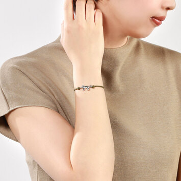 「伝えるのは、命」という旭山動物園の理念に共感し、それぞれの動物らしい表情や動きの瞬間をアクセサリーで表現したラインナップ。アムールトラはトラの仲間で最も寒い地方に住み、最も大きい種類です。自然破壊のため絶滅寸前で、野生では約400頭程しかいませんが、近年保護活動が進み、徐々に回復傾向になってきました。園内では好奇心いっぱいに、元気にじゃれあう微笑ましい姿が見られます。躍動感あふれる一瞬の姿をとらえてコードブレスレットにしました。スライドアジャスターで長さ調整もスマートにできます。顔の表情や、リアルな体の動き、トラ模様のディテールにまでこだわった商品です。売り上げの一部は「あさひやま”もっと夢”基金」に寄付いたします。 ▼ 旭山動物園応援企画 商品一覧はこちらhttps://vendome.jp/vendome_boutique/feature/asahiyama_zoo※シルバー製品のお取り扱いについてシルバー製品は変色する素材のため、ご使用後は汚れを柔らかい布で拭き取り、なるべく空気に触れないよう保管いただくことをお勧めします。