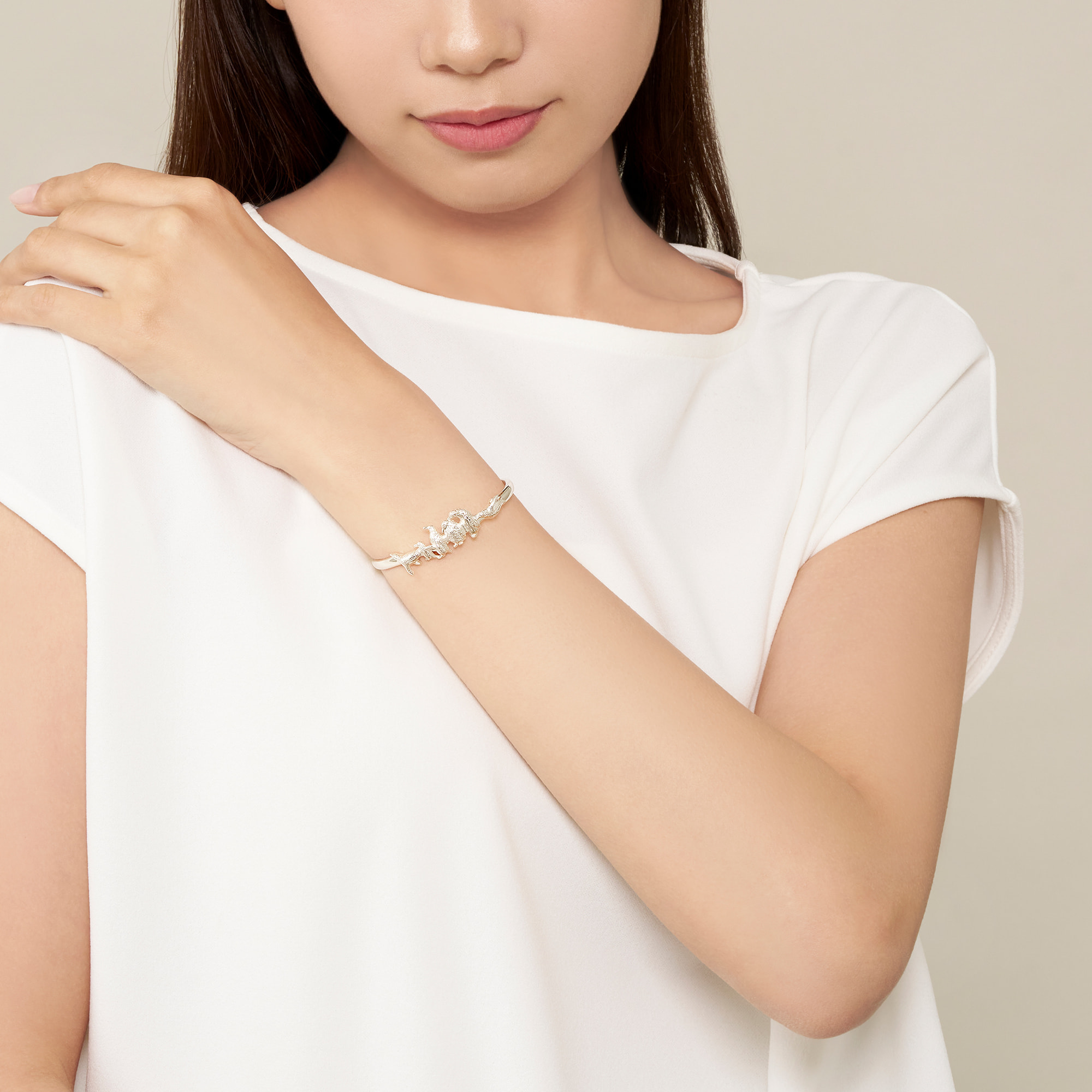 「伝えるのは命」という旭山動物園の理念に共感し、それぞれの動物らしい表情や動きの瞬間をアクセサリーで表現したラインナップ。旭山動物園の冬の風物詩でもある「ペンギンの散歩」をブレスレットで表現しました。ペンギンの散歩は、ペンギンの冬場の運動不足の解消、来シーズンの繁殖に向けた体づくりに欠かせないものです。ジェンツーペンギンを先頭に、思い思いの姿で後ろへ続くキングペンギンたちの行列は微笑ましくも、圧巻です。大人のキングペンギンに混じり、マイペースに歩いている子供のキングペンギンにも注目。子供の時期だからこその、もふもふの羽毛にこだわりました。売り上げの一部は「あさひやま”もっと夢”基金」に寄付いたします。 ▼ 旭山動物園応援企画 商品一覧はこちらhttps://vendome.jp/vendome_boutique/feature/asahiyama_zoo※こちらの商品は無料でスペシャルパッケージにお入れいたします。