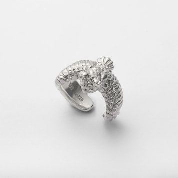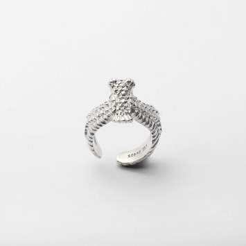 「伝えるのは、命」という旭山動物園の理念に共感し、それぞれの動物らしい表情や動きの瞬間をアクセサリーで表現したラインナップ。シマフクロウの「シマ」は北海道に分布しているという意味があります。日本の天然記念物に指定されており、世界最大級のフクロウです。夜空を羽ばたくシマフクロウの凛々しい姿を表現したイヤーカフ。耳元に寄り添うシマフクロウは、程よいボリューム感で装いにアクセントをプラスします。羽音が聞こえてきそうなほどリアルな羽の縞模様や、眉毛のような羽角など職人技により細部までこだわりました。幸運を呼ぶ吉鳥ともいわれるフクロウは、自分のとっておきのお守りアイテムとしてもおすすめです。売り上げの一部は「あさひやま”もっと夢”基金」に寄付いたします。 ▼ 旭山動物園応援企画 商品一覧はこちらhttps://vendome.jp/vendome_boutique/feature/asahiyama_zoo