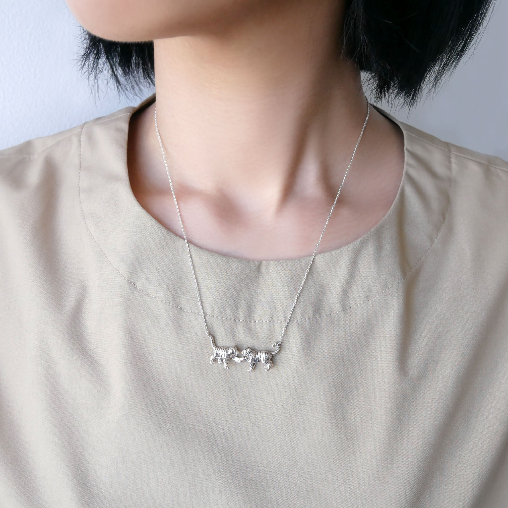 「伝えるのは、命」という旭山動物園の理念に共感し、それぞれの動物らしい表情や動きの瞬間をアクセサリーで表現したラインナップ。アムールトラはトラの仲間で、最も寒い地方に住み、最も大きい種類です。自然破壊のため絶滅寸前で、野生では400頭程しかいませんが、近年保護活動が進み、徐々に回復傾向になってきました。園内でじゃれあい、元気に遊ぶ愛嬌たっぷりの瞬間をとらえてネックレスにしました。顔の表情や、リアルな体の動き、トラ模様のディテールにまでこだわった商品です。スライドアジャスターで長さ調整もスマートにできます。売り上げの一部は「あさひやま”もっと夢”基金」に寄付いたします。 ▼ 旭山動物園応援企画 商品一覧はこちらhttps://vendome.jp/vendome_boutique/feature/asahiyama_zoo※シルバー製品のお取り扱いについてシルバー製品は変色する素材のため、ご使用後は汚れを柔らかい布で拭き取り、なるべく空気に触れないよう保管いただくことをお勧めします。