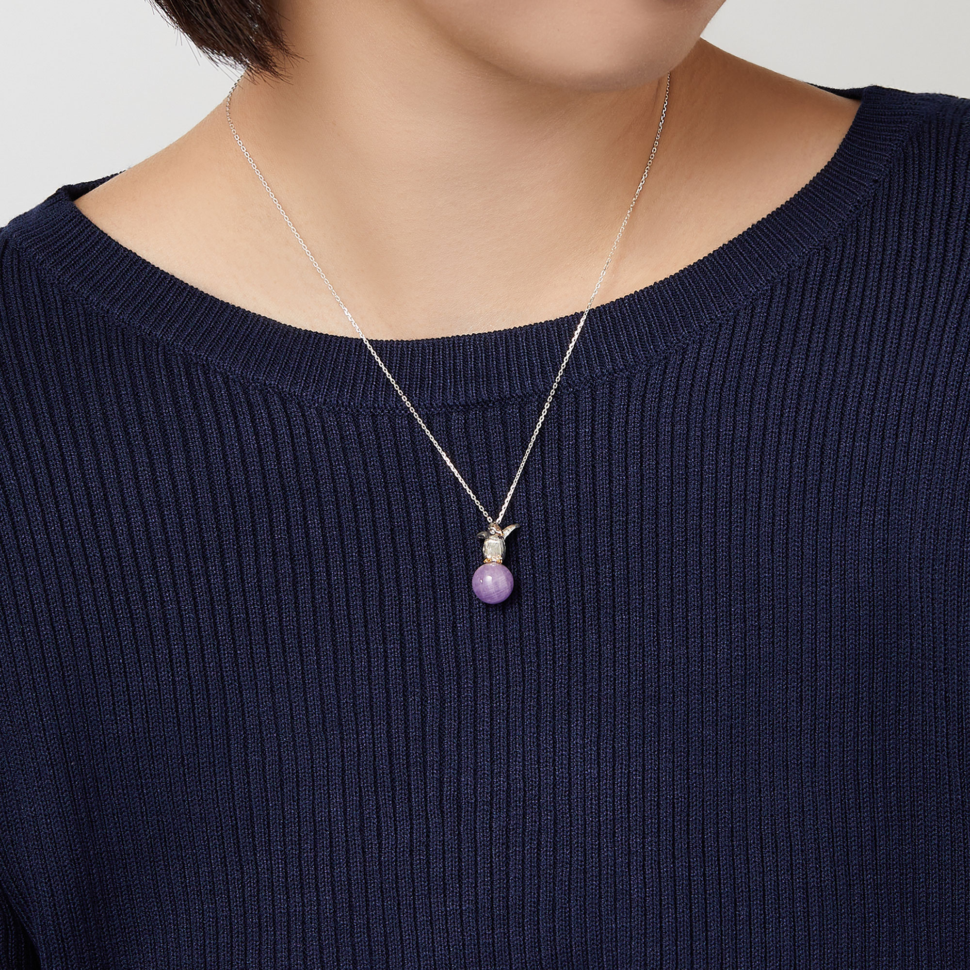 「伝えるのは、命」という旭山動物園の理念に共感し、それぞれの動物らしい表情や動きの瞬間をアクセサリーで表現したラインナップ。ジェンツーペンギンの泳ぐスピードはとても速く、ペンギンの中ではもっとも速いとされています。また、羽(フリッパー)を目一杯広げながら歩く姿はとっても魅力的です。水中での目にも止まらない泳ぎの速さはもちろん、陸に上がるときの垂直ジャンプも見事です。機敏に着地したその一瞬を切りとり、ネックレスで表現しました。上品なラベンダーカラーのアメシストと愛らしいペンギンが胸元をキュートに演出します。売り上げの一部は「あさひやま“もっと夢”基金」に寄付いたします。 ▼ 旭山動物園応援企画 商品一覧はこちらhttps://vendome.jp/vendome_boutique/feature/asahiyama_zoo
