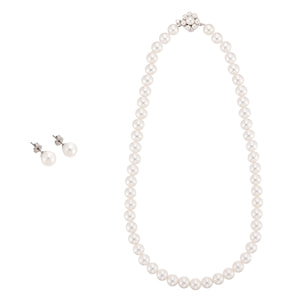 ホワイトカラー貝パールのネックレスとピアスのロイヤルペルルセット。