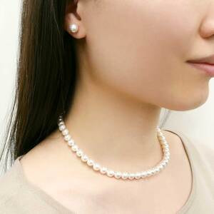 ネックレスは人気の7mm珠。ピアスはワンサイズアップの8mm珠をセットした数量限定セット。