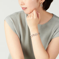 手元が寂しくなるこの時期に欲しくなるブレスレット。ボリュームのあるチェーンブレスレットは、存在感があり手首を細くみせてくれます。カットガラスの煌めきがエレガントさをプラス。コーディネートをクラスアップします。