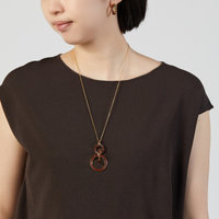 秋に人気のショコラブラウンカラーをアクセサリーから。シックなブラウンにゴールドカラーが華やかさをアップ。大小異なるサイズのサークルモチーフが揺れる軽やかなネックレスは、存在感があり厚手のニットなどで合わせるのもおすすめです。