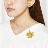 春が待ち遠しくなるイエローカラーが華やかなミモザのアクセサリー。シンプルな洋服にイヤリング/ピアスとブローチをセットで合わせれば、春を感じるぐっと明るいスタイルに。
