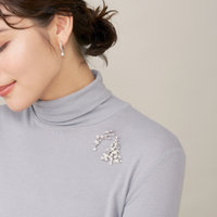 シンプルなトップスやコートの襟もとに、ホリデーシーズンを感じるクリスマスツリーを象ったブローチをオン。ふんわりとツリーに降り積もる雪をパールで表現した、ロマンティックなデザイン。煌めく流れ星ブローチをプラスすれば、エレガントな大人のクリスマスを演出できます。シーズンブローチは季節が限られてしまいますが、その季節をめいいっぱい感じられるアイテムでおすすめです。