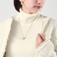 毛糸玉のふんわりしたイメージをメタルで表現したデザインは、ジャケットのボタンにもリンク。